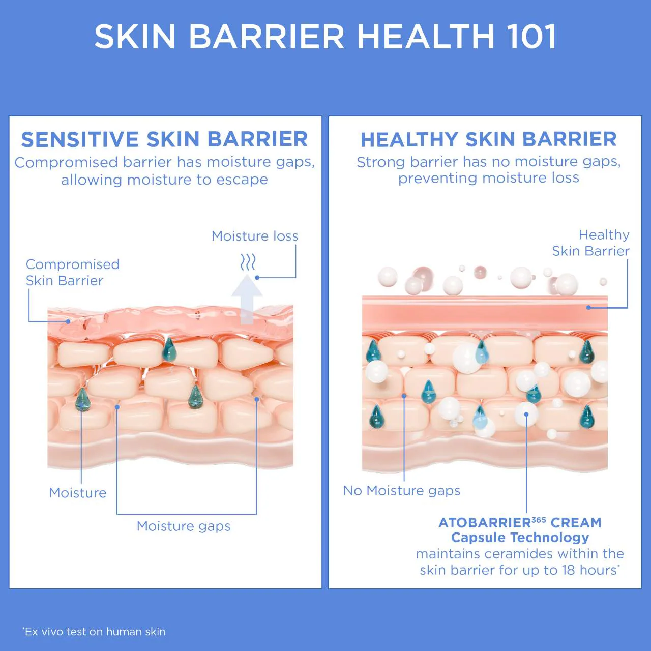 This dermatologist-tested cream is designed for normal to dry skin, delivering up to 120 hours of deep hydration. Its patented barrier-boosting ceramide blend replenishes moisture gaps, while capsule technology prolongs ceramide retention in the skin barrier. Enriched with a triple lipid complex of ceramides, fatty acids, and cholesterol, it effectively restores and supports skin’s moisture barrier. Free from harmful ingredients, it nourishes sensitive skin to improve dryness and enhance overall skin health.