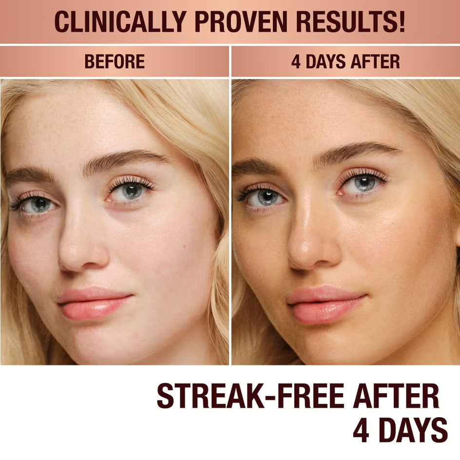 Aqua/Water/Eau, Dihydroxyacetone, Erythrulose, Alcohol, Pentylene Glycol, Glycerin, Xanthan Gum, Sodium Benzoate, Citric Acid, Cichorium Intybus (Chicory) Root Extract, Caramel, Gluconolactone, Sodium Hyaluronate, Titanium Dioxide (Ci 77891), Mica, Phenoxyethanol, Ethylhexylglycerin, Tin Oxide.